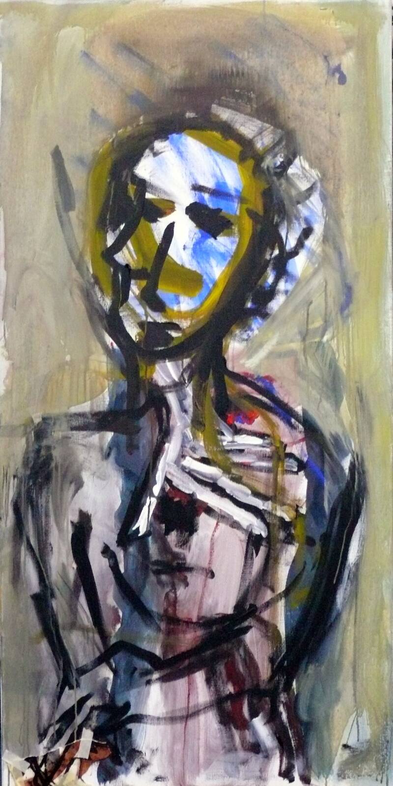 Blue stripes in the head / Blauwe strepen in het hoofd, acrylic on canvas, 70 x 140 cm